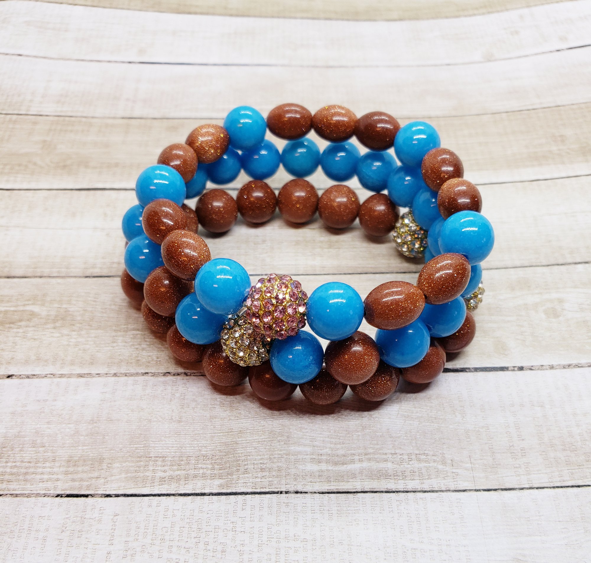 Goldstone and Sky Blue Mountain Jade Bracelet