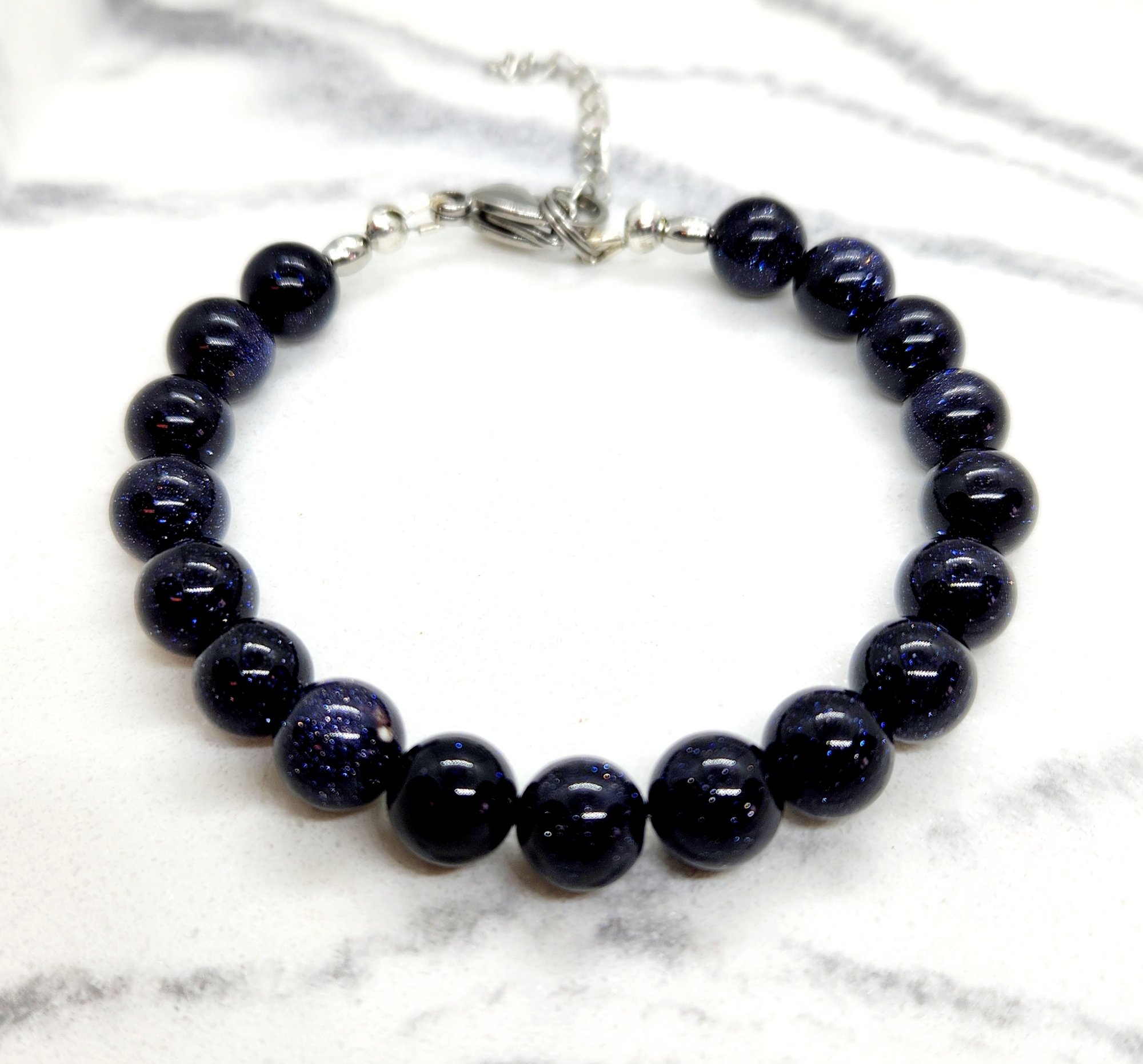 Beautiful 10mm Sandstone stones with hints of silver. The blue Sandstone is reminiscent a galaxy of stars. Sandstone is thought to be a good protector of unwanted energies, a stone of protection.