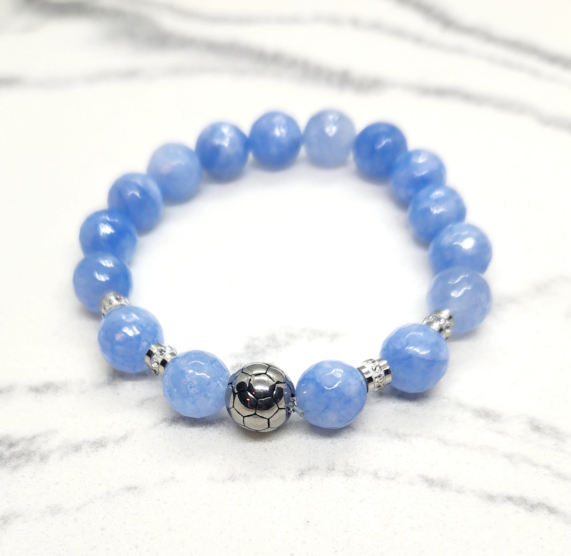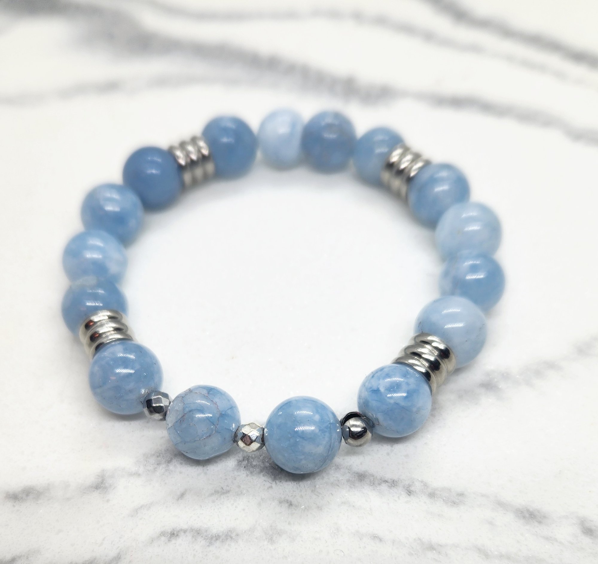 Light Blue Agate with stainless steel focal and spacer beads, Fits up to 7 1/4 inches