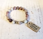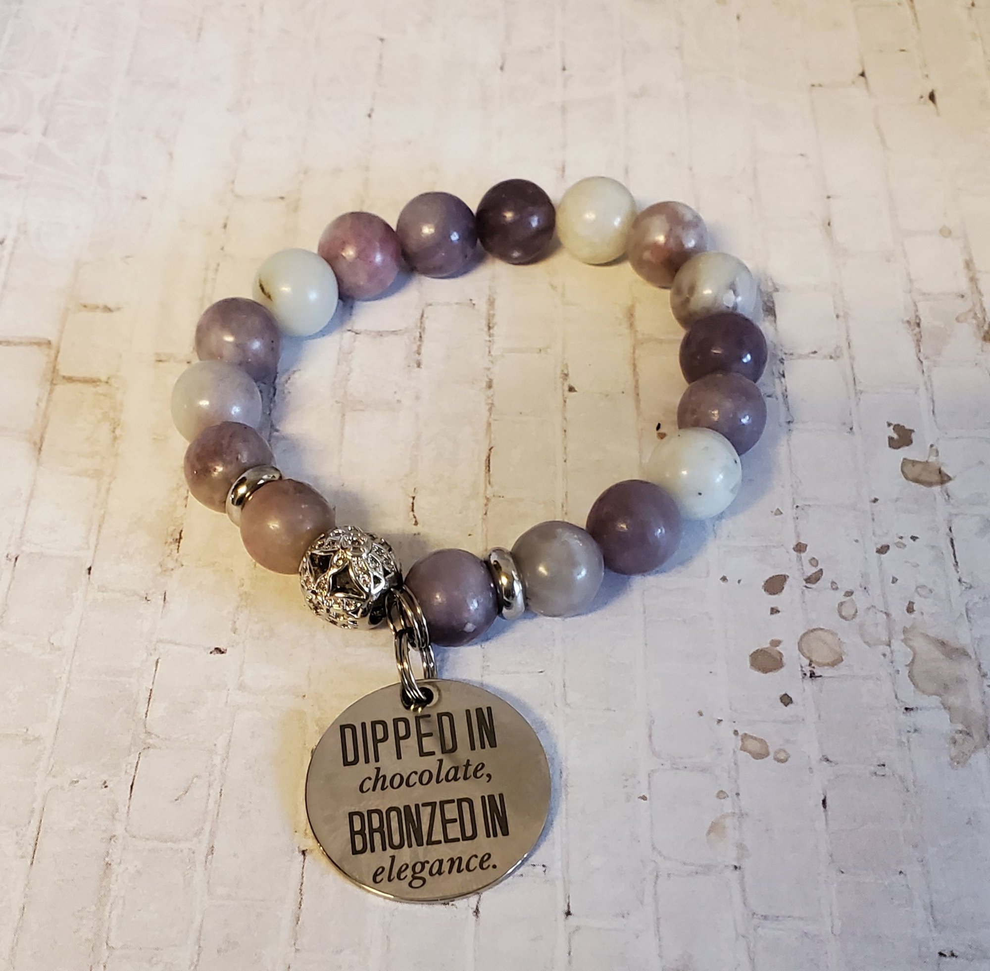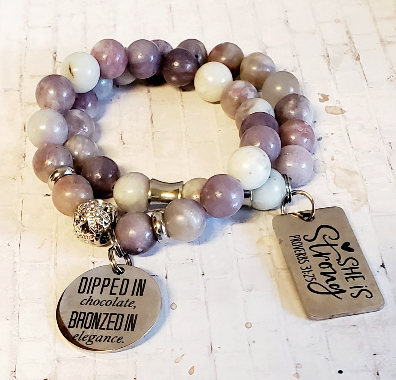 Purple Stone Double Stack Bracelet with stainless steel spacer beads and charms.