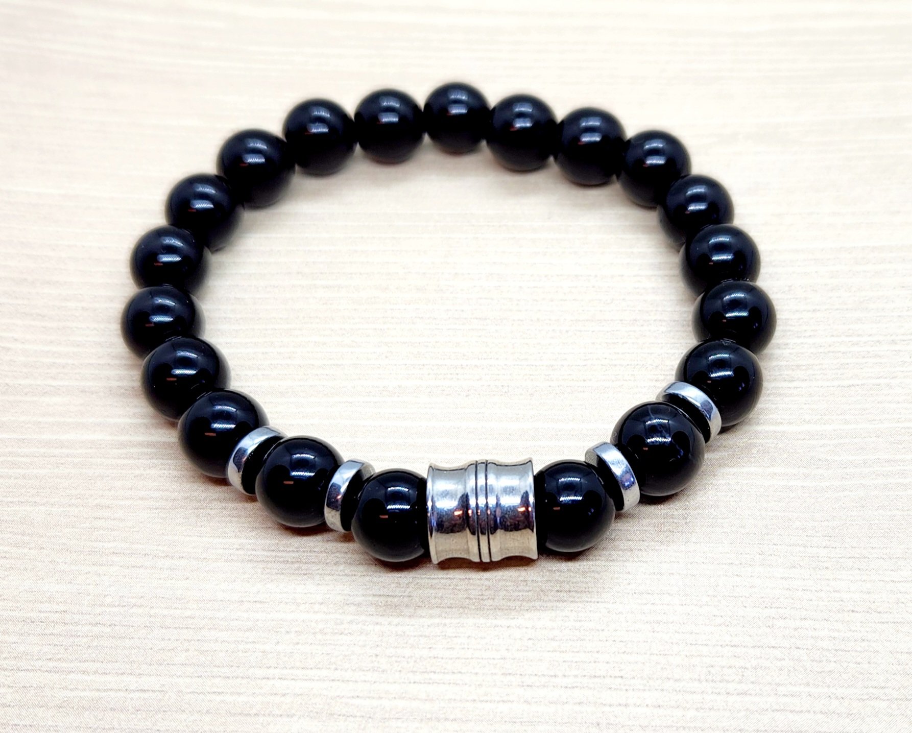 Agate stones Stainless Steel focal bead and spacers. Agate is said to improve memory and concentration and to encourage honesty. It is also said to promote strength and increase stamina while also curing insomnia. Fits up to 7 3/4 inches.